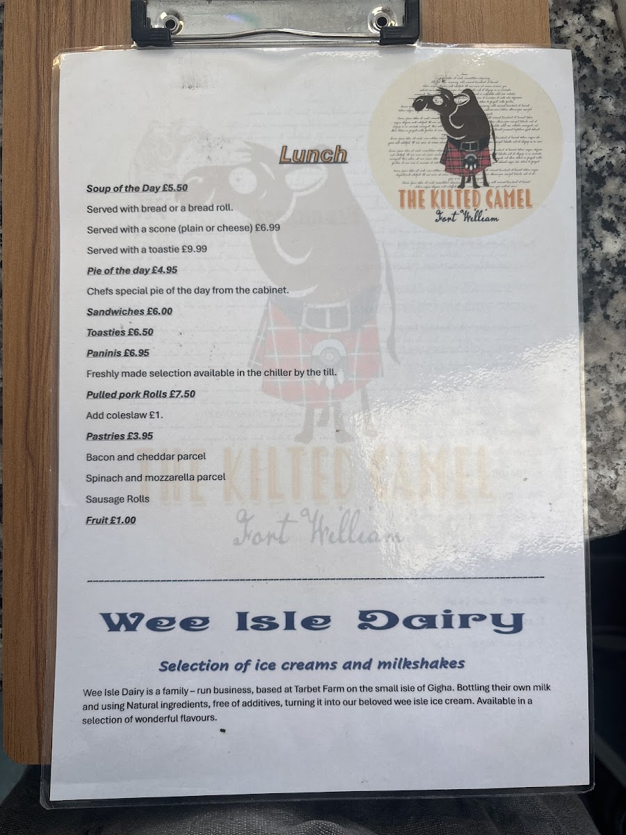 The Kilted Camel Menu